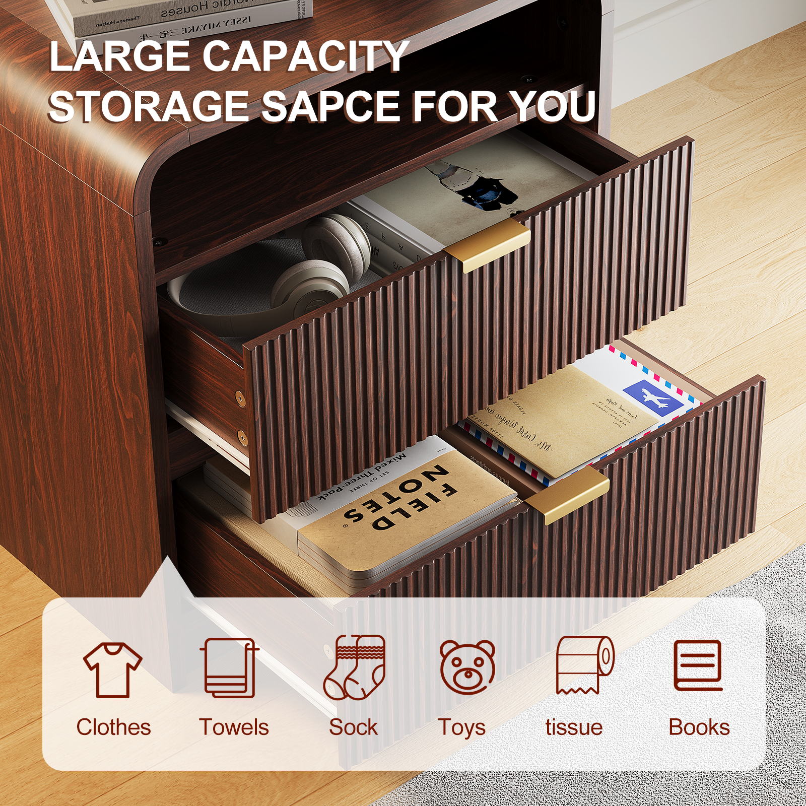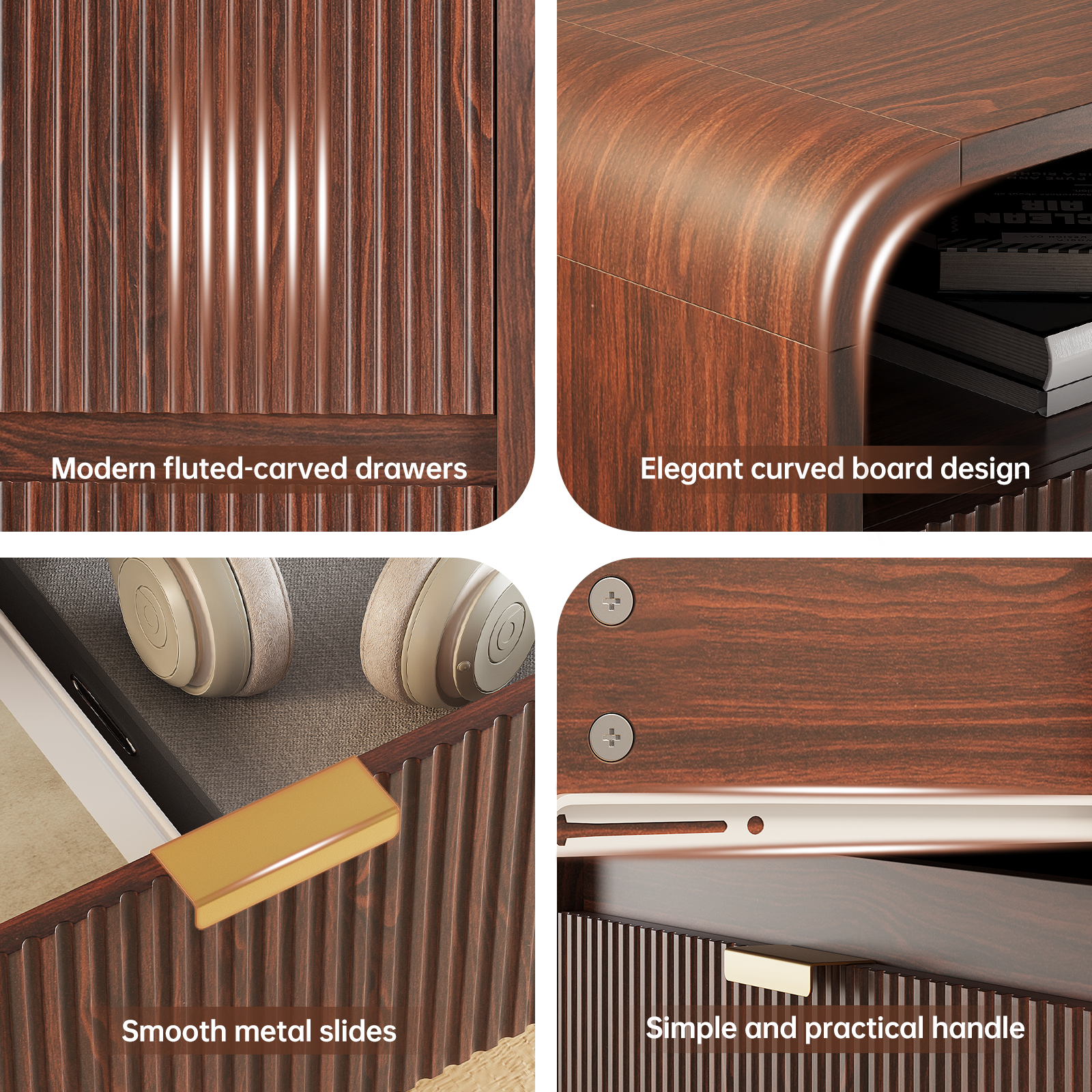• Elevate your space with this nightstand, blending artful design and modern durability. Sculpted fluted details create captivating texture and depth, turning functional storage into a statement piece for any bedroom or living area.