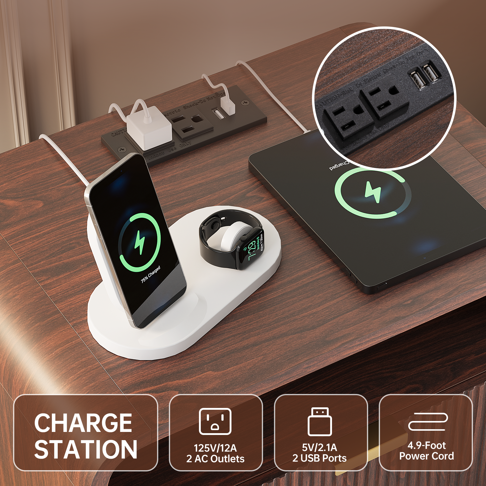 Versatile Nightstand with Charging Station