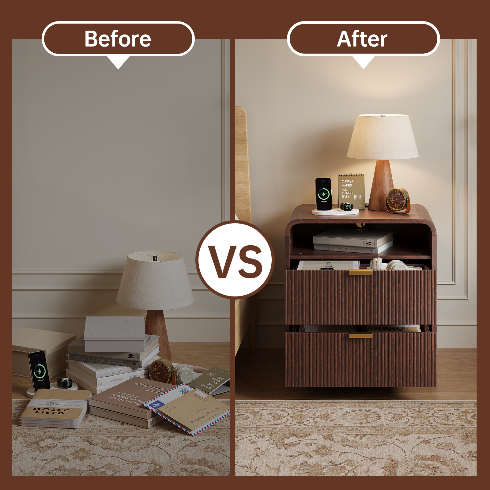 • 2 smooth-gliding drawers keep your bedroom essentials and daily accessories. Keeping your space clutter-free while adding character to bedrooms, living areas, entryway drop zones, or hallway nooks.making it an ideal addition to enhance your home decor. If you have any questions about our product, please contact us anytime, we will provide you with a satisfactory answer within 24 hours.