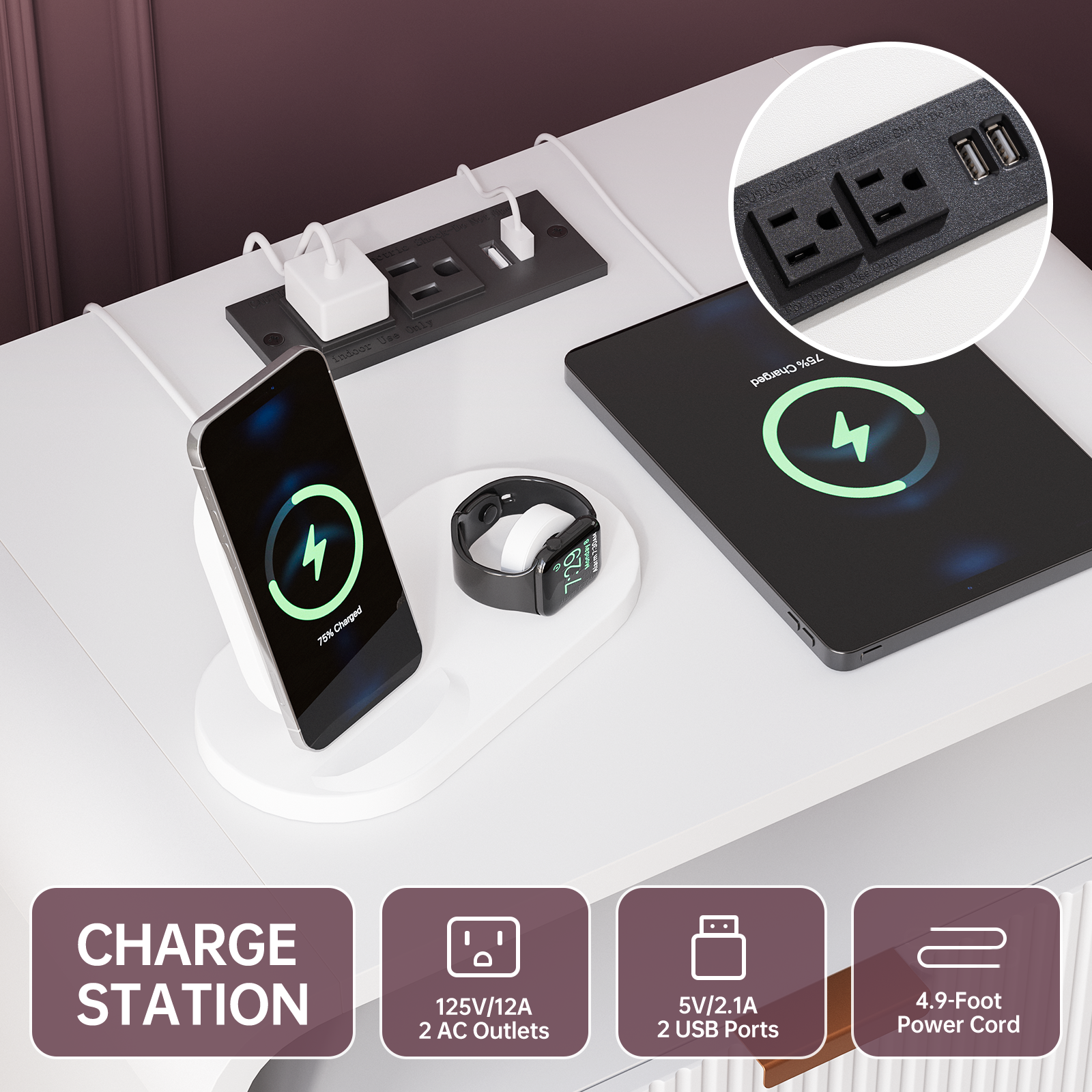 Versatile Nightstand with Charging Station