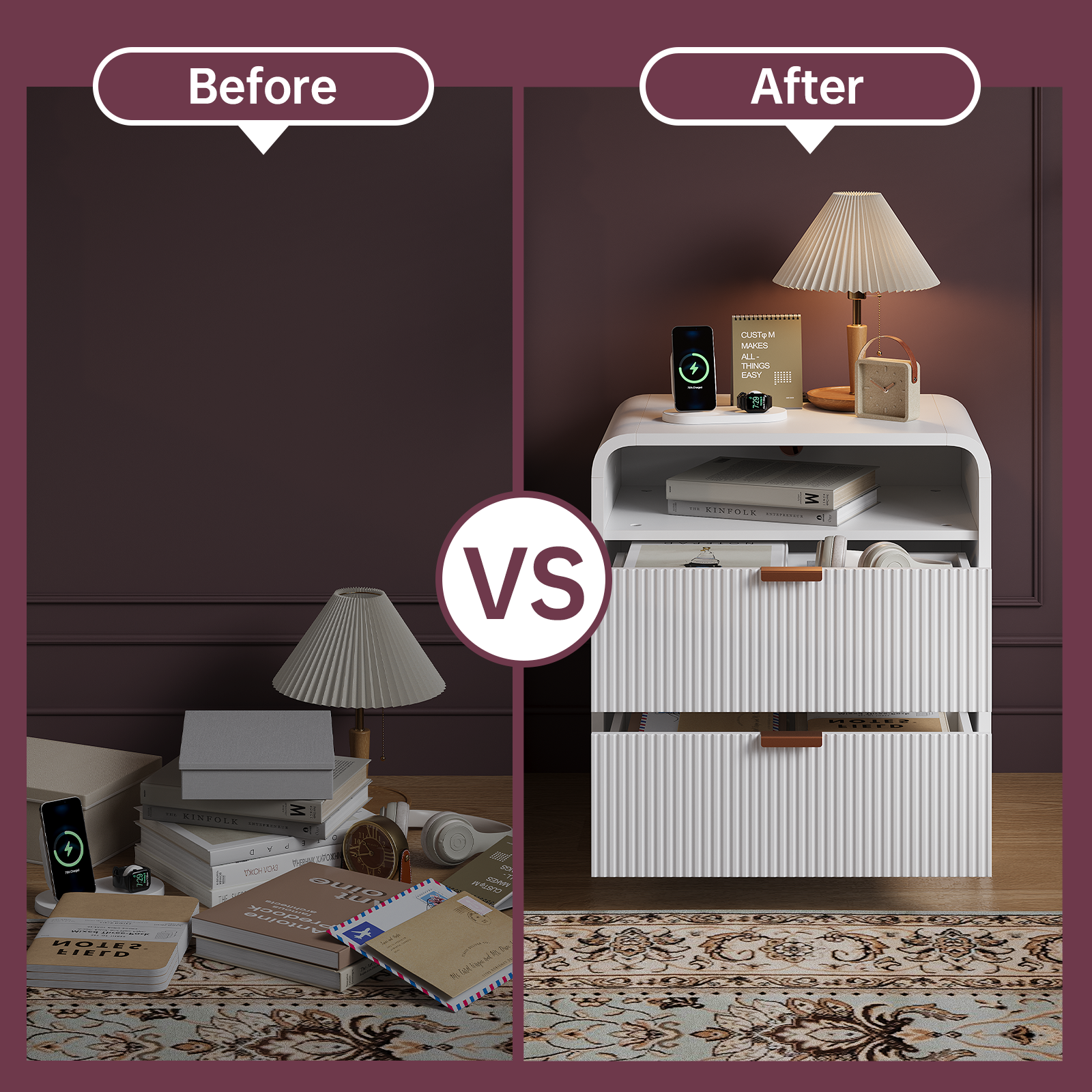 • 2 smooth-gliding drawers keep your bedroom essentials and daily accessories. Keeping your space clutter-free while adding character to bedrooms, living areas, entryway drop zones, or hallway nooks.making it an ideal addition to enhance your home decor. If you have any questions about our product, please contact us anytime, we will provide you with a satisfactory answer within 24 hours.