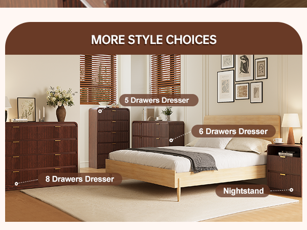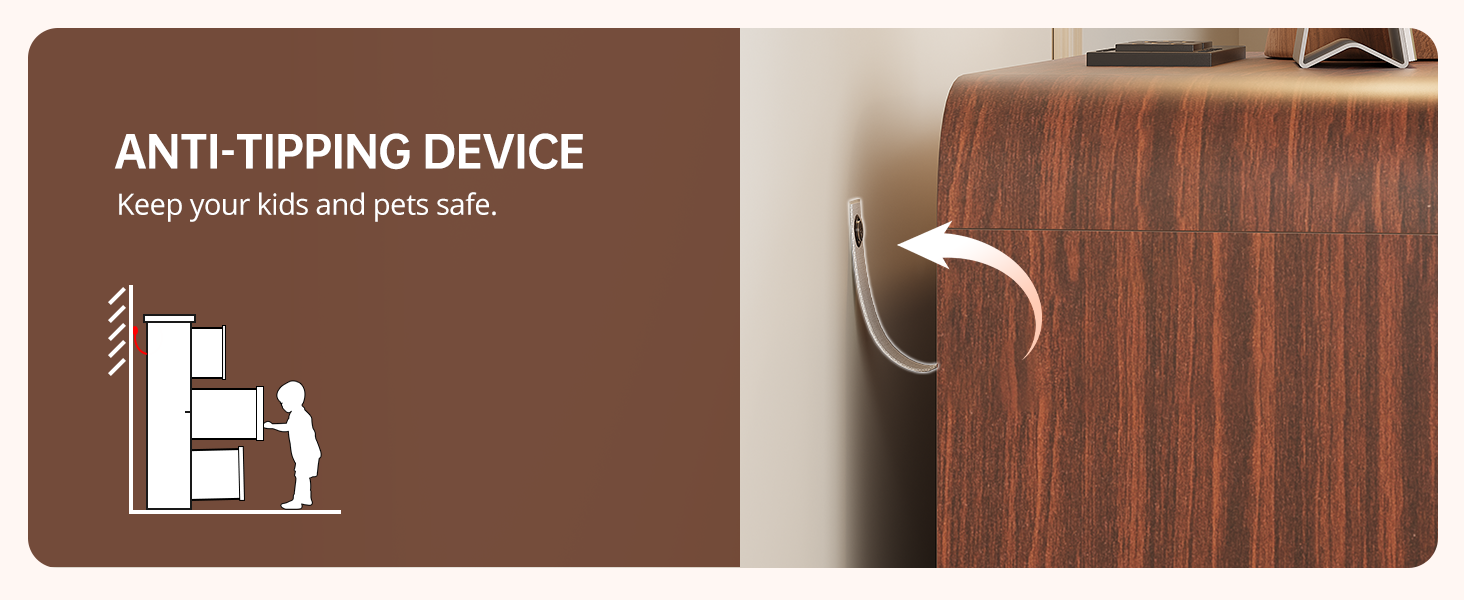 • The dresser for bedroom equipped with an anti-tipping device, which can anchor it securely to the wall to preventing accidents. Each drawer pairs metal handles and built-in slide rail, giving you buttery-smooth opening and closing. The reinforced base construction ensures rock-solid stability, keeping the dresser wobble-free even when fully loaded. a reliable and sturdy piece of furniture.