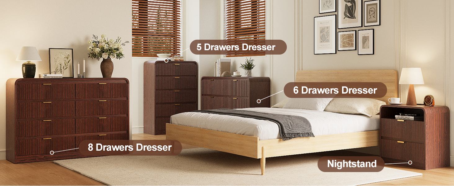 • Crafted with durable, scratch-resistant MDF and P2-certified engineered wood, dressers & chests of drawers deliver lasting style. fluted dresser has exquisite texture, but also ensure long-term use and scratch resistant. For easy cleaning, just wipe with damp cloth and get it air-dried.
