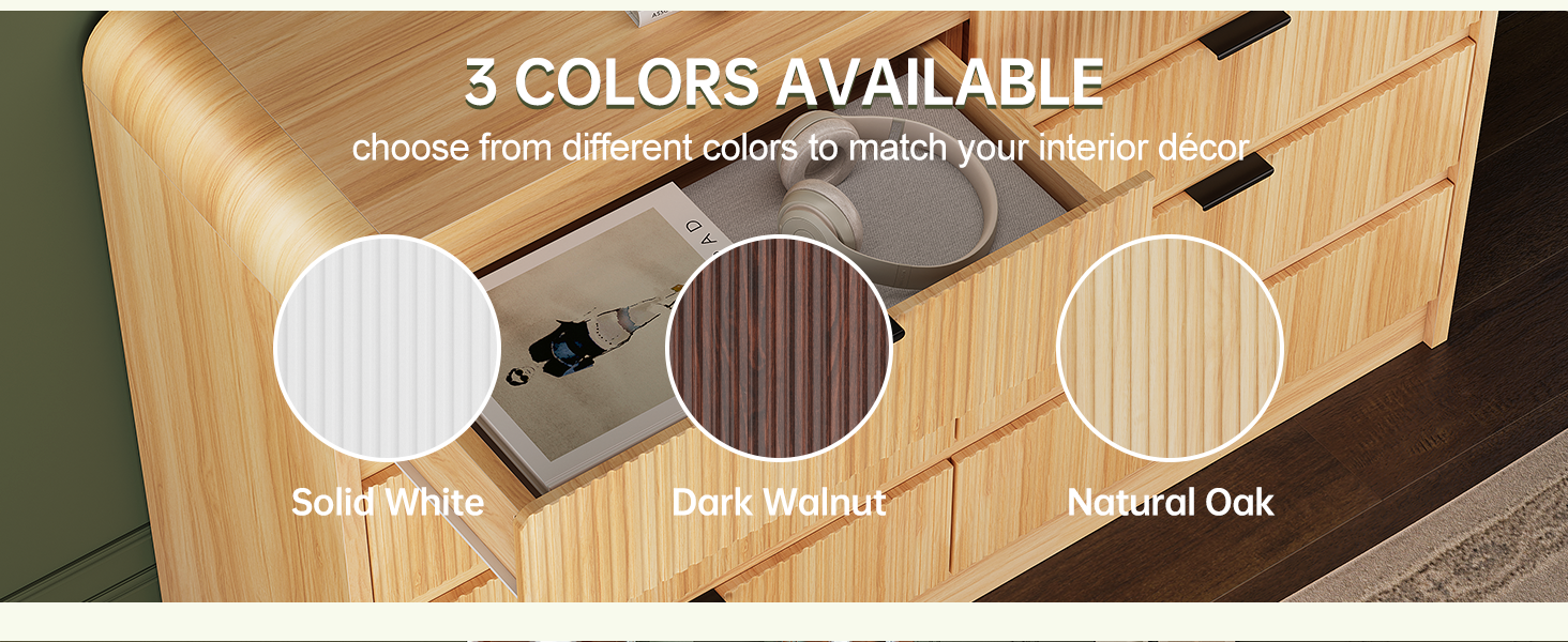 • Crafted with durable, scratch-resistant MDF and P2-certified engineered wood, dressers & chests of drawers deliver lasting style. fluted dresser has exquisite texture, but also ensure long-term use and scratch resistant. For easy cleaning, just wipe with damp cloth and get it air-dried.