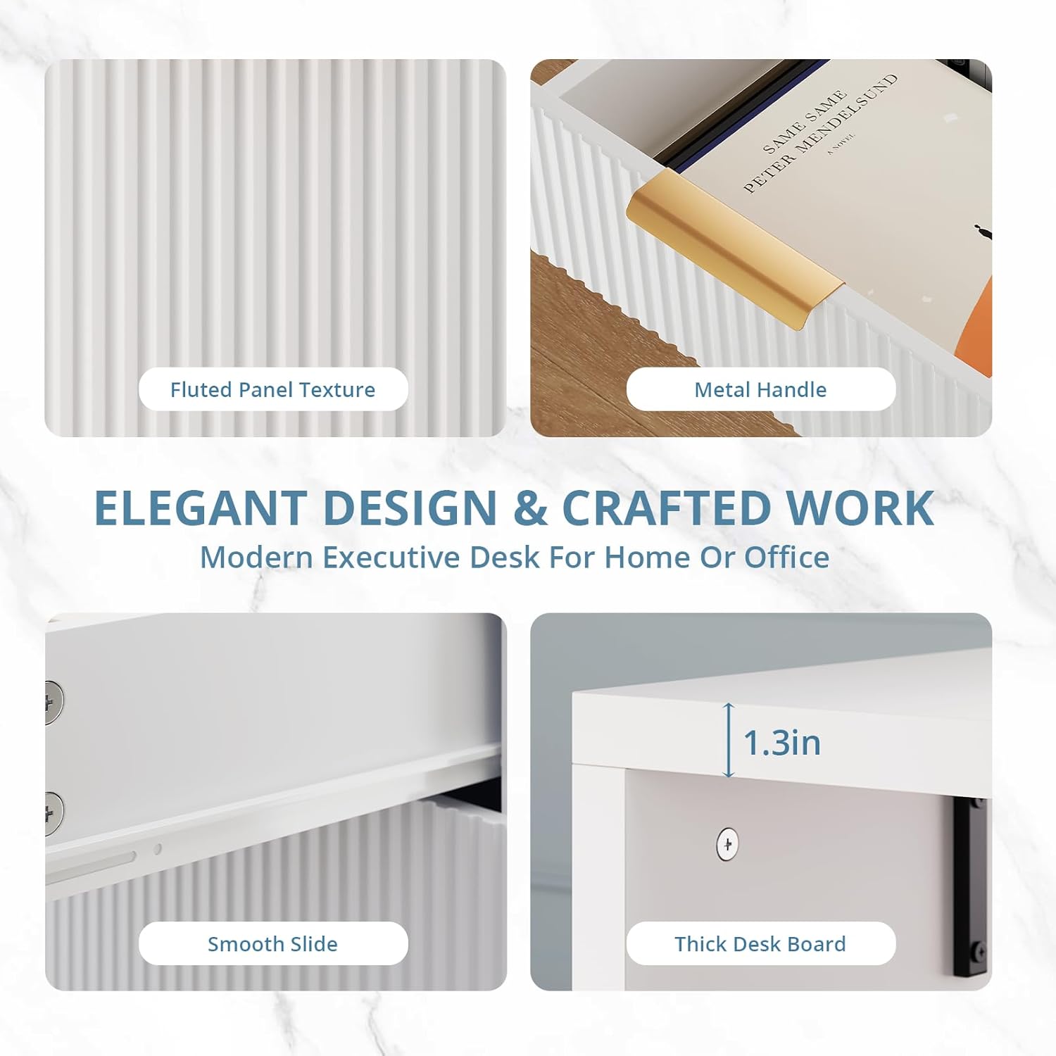 • Fursun modern executive desk features a unique grooved drawer panel design with refined craftsmanship and attention to detail. The elegant fluted add a touch of sophistication and contemporary style.