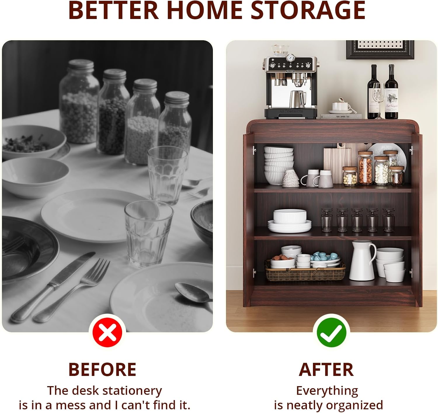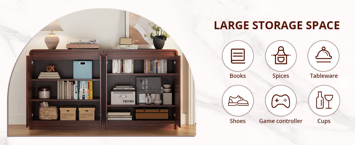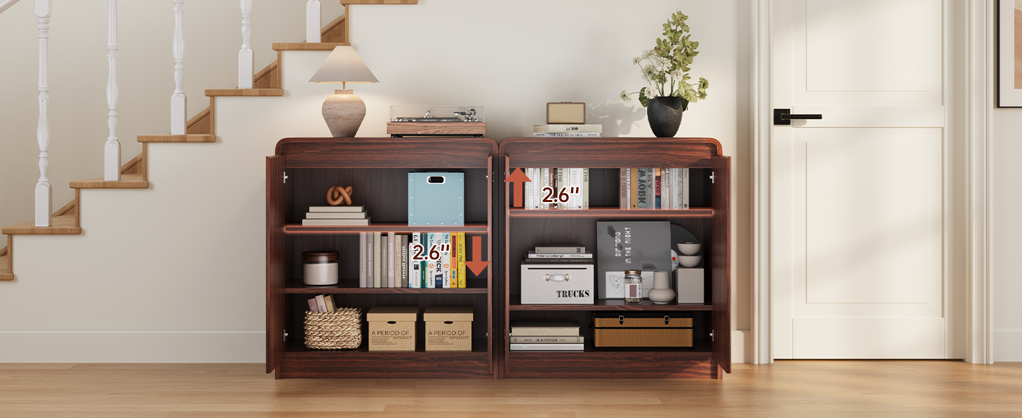 • Measuring 31”W × 15.7”D × 34”H, this buffet cabinet offers ample storage for your daily essentials. The adjustable shelves let you customize the space to fit your needs, while the enclosed cabinet doors keep your items neatly hidden for a clean, stylish look. Perfect for use as a buffet table, coffee bar, or entryway console.