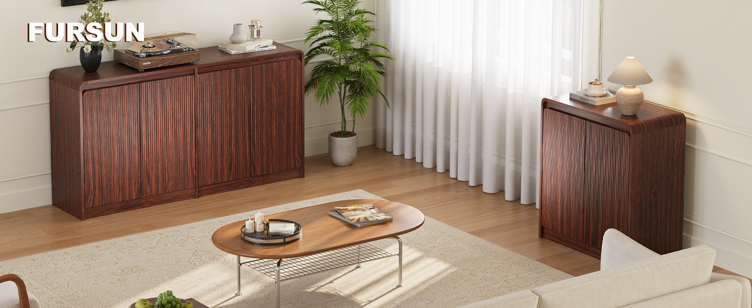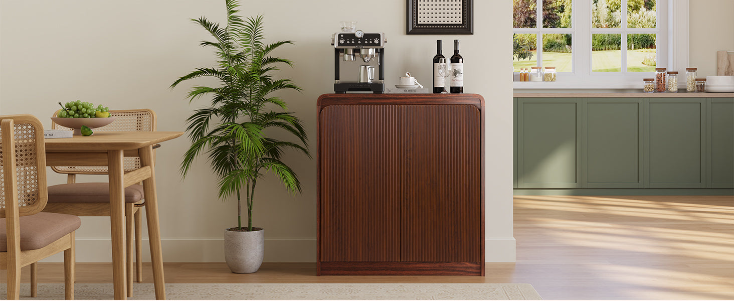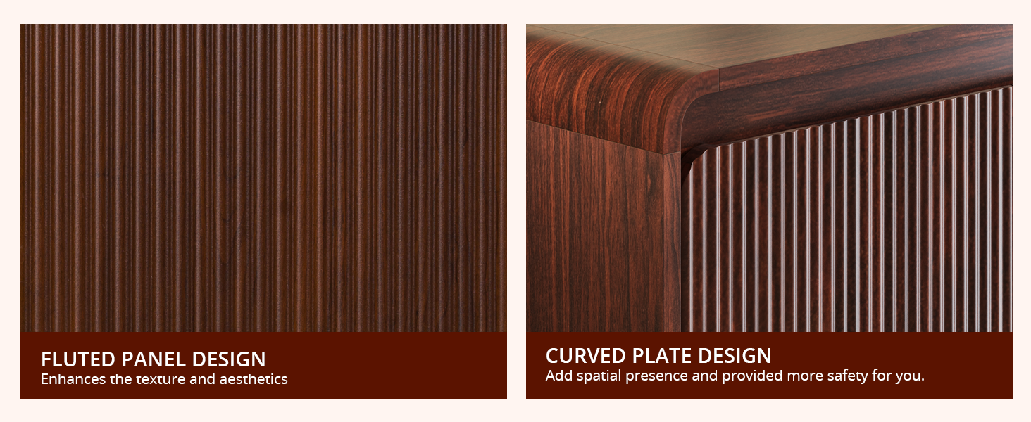 • This fluted sideboard combines modern aesthetics with timeless elegance. Featuring unique wavy groove panels and a curved silhouette, this buffet cabinet perfectly complements contemporary furniture styles.